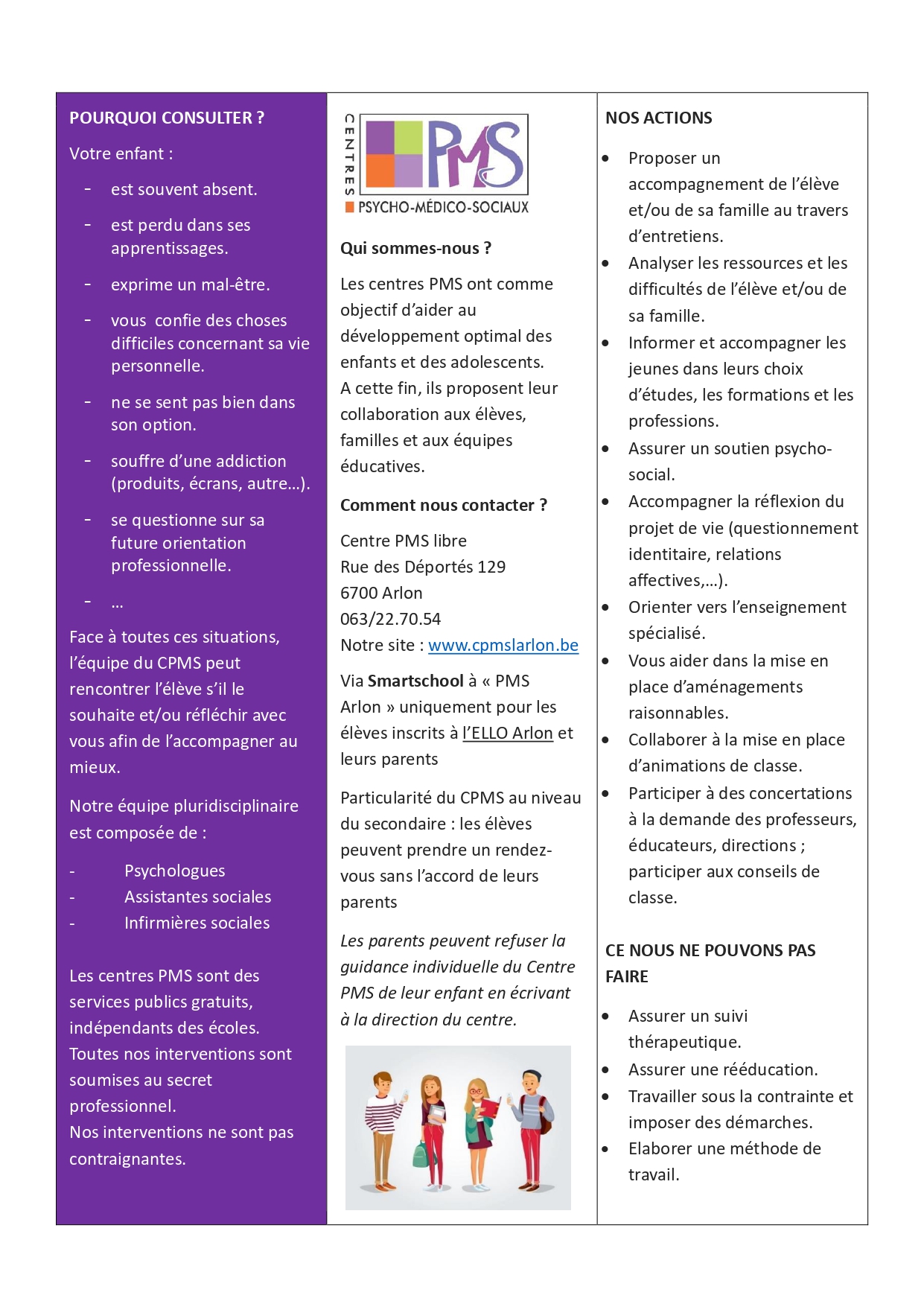Le Centre PMS Libre d’Arlon (063/22 70 54)