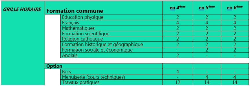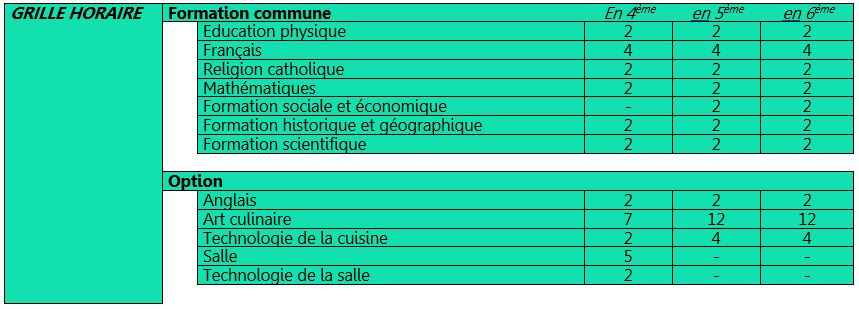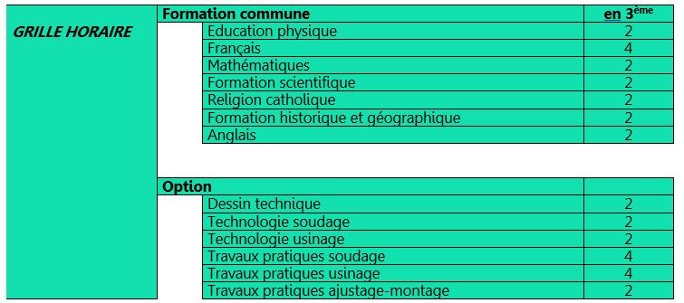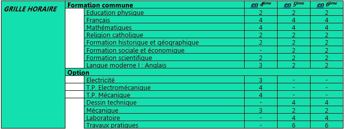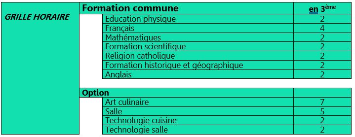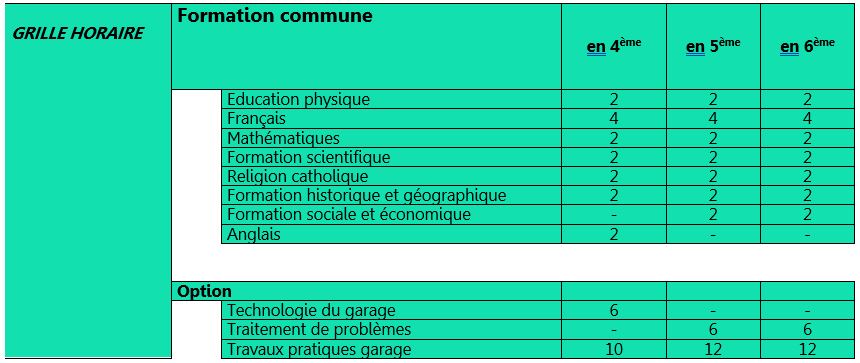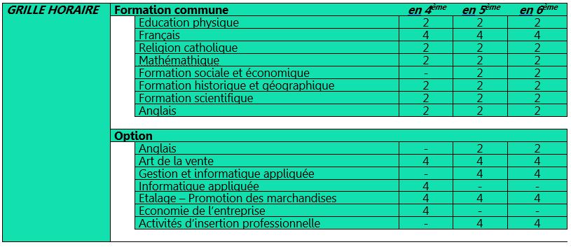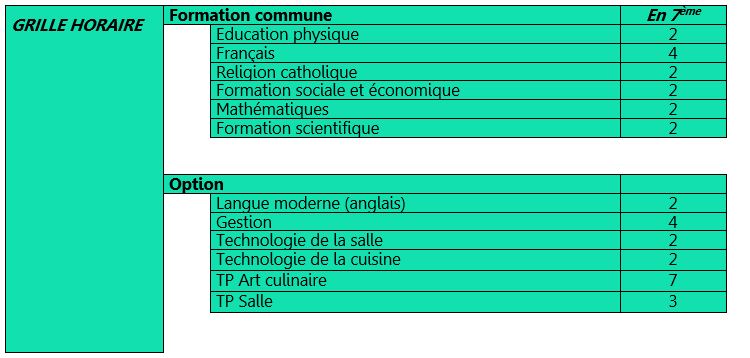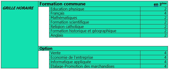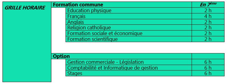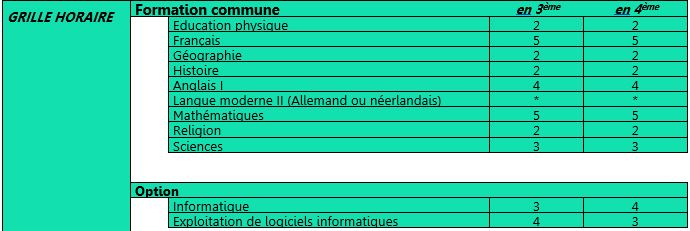 Grille de première secondaire (S1)